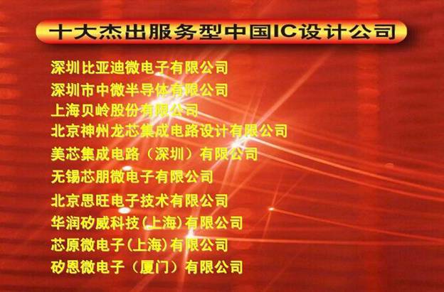 “十大精采办事型中国IC设想公司”大奖